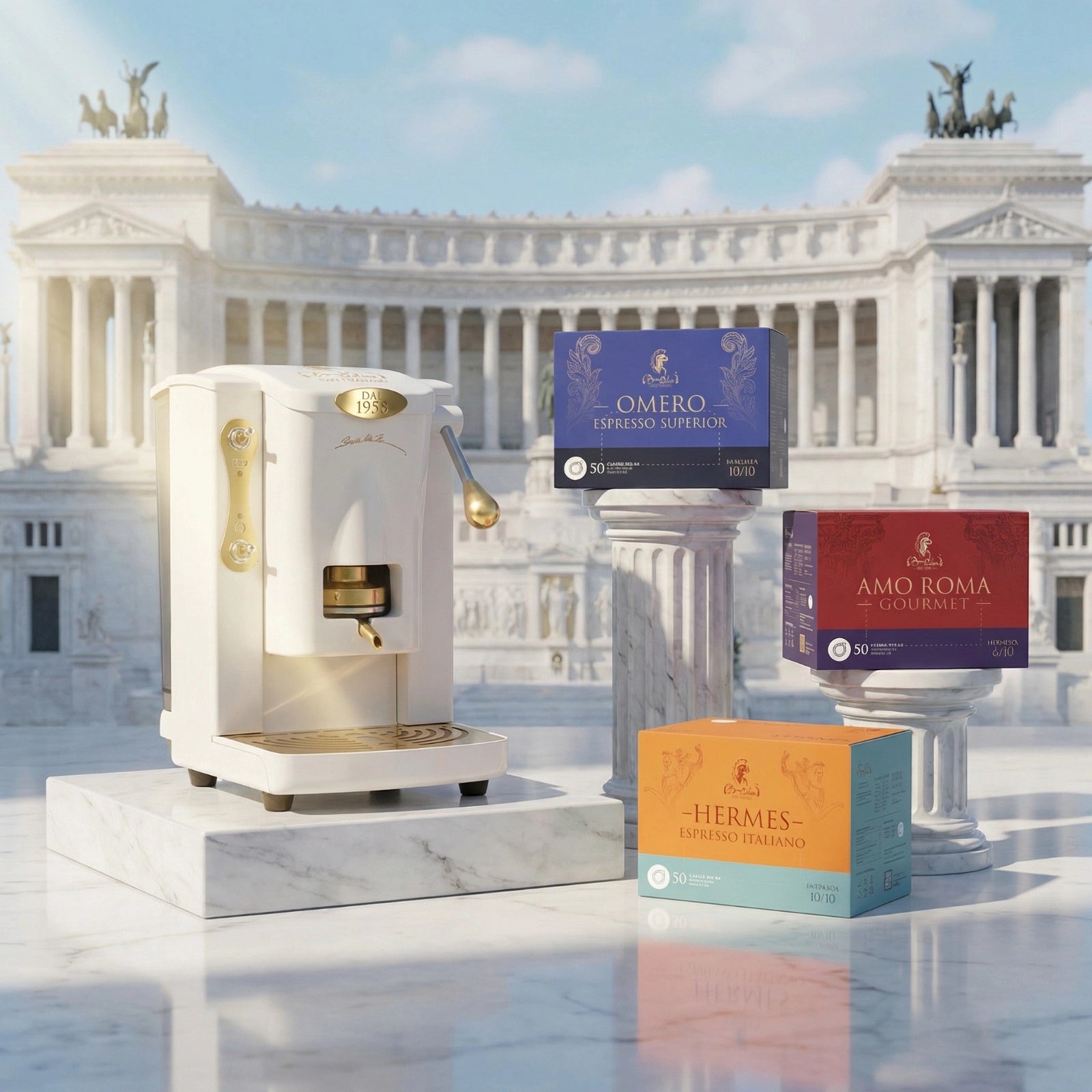 Cafetera “Thomas” ESE 44mm Bocca della Verità® + 150pz Pods Degustación